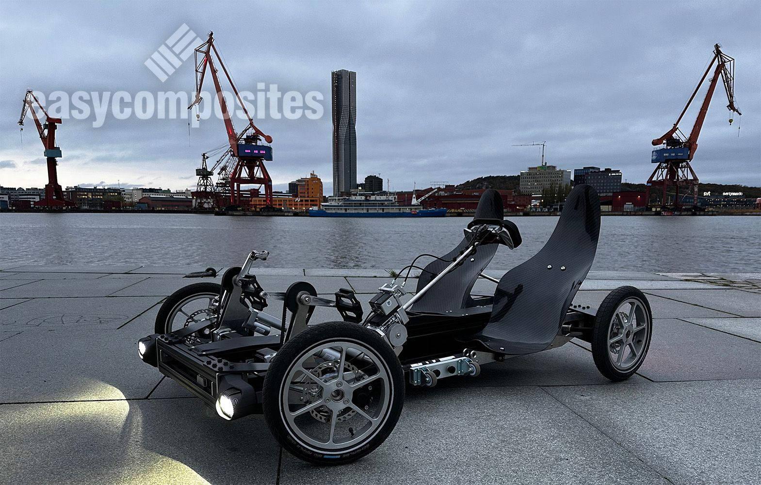 The vehicle uses extensive custom engineered components where nothing but bespoke was good enough. This is where composites make a lot of sense with their ease of conformance to specific shapes and incredible strength to weight ratio. In the case of the project so far, a custom made tyre was crucial and so was cast using flexible PU resin to save both time and money. The next production intent prototype will move onto a carbon monocoque chassis.