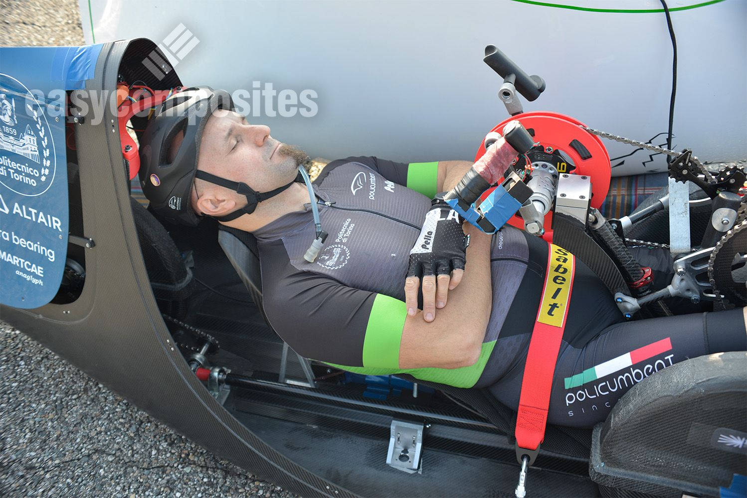Cerberus is an hand-trike, so a arm-powered vehicle with three wheels, in a "tadpole" configuration, so two wheels at the front and one at the back. It has been designed with the intent to break the world record of 83.02 km/h, Cerberus successfully beat this speed during the 2024 WHPSC, reaching 83.28 km/h and claiming the new world record.